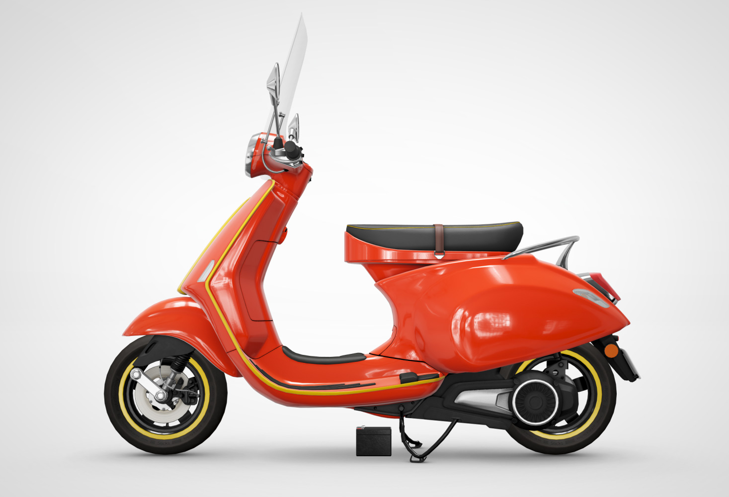 Side view of a red scooter