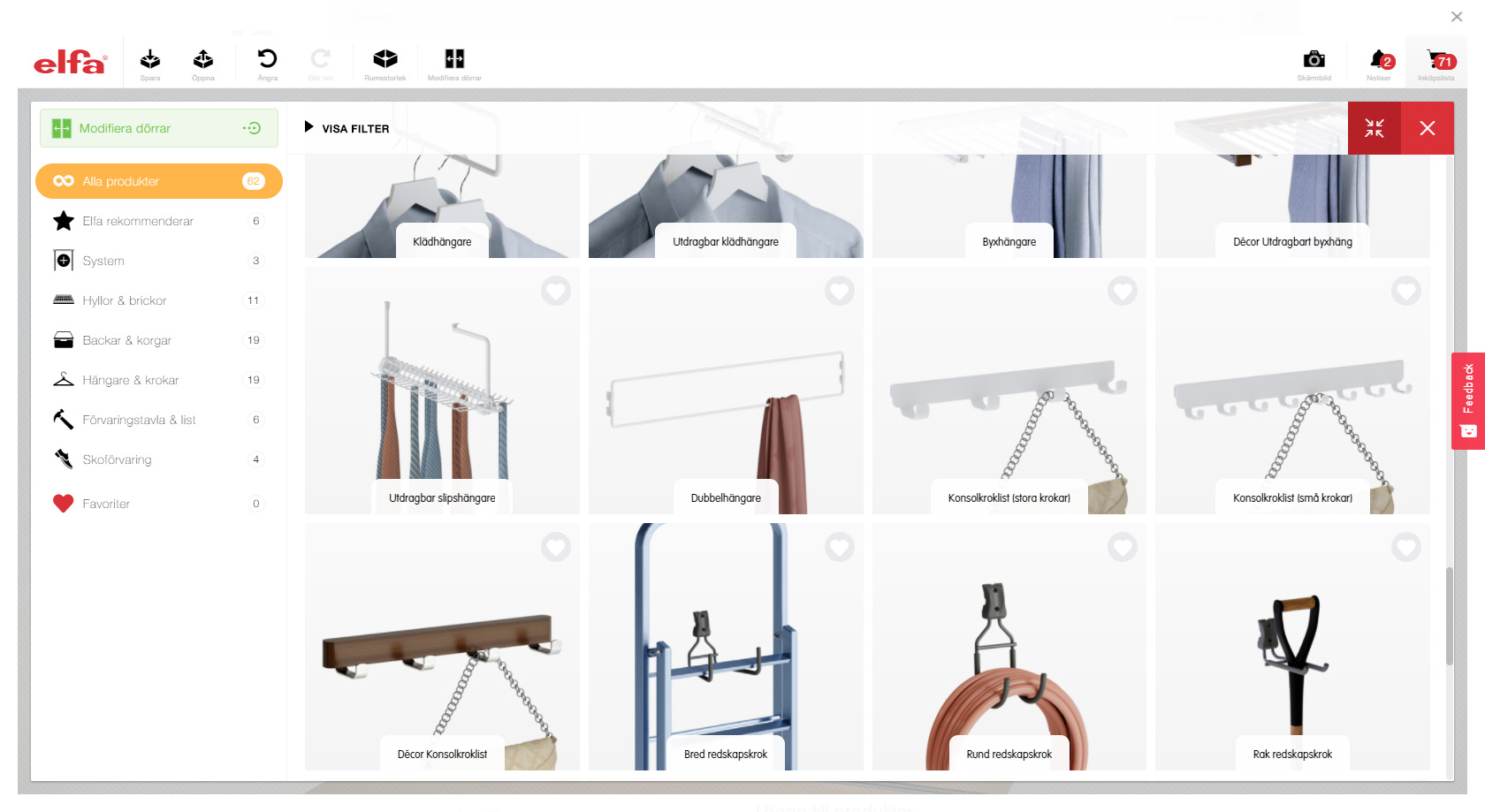 During 2016 a new version of the storage planner started development. This time the tool was aimed towards consumers directly. The biggest difference between the two applications was usability. Whereas the professional planner requires knowledge of Elfa’s product, the consumers planner can be used by anyone.