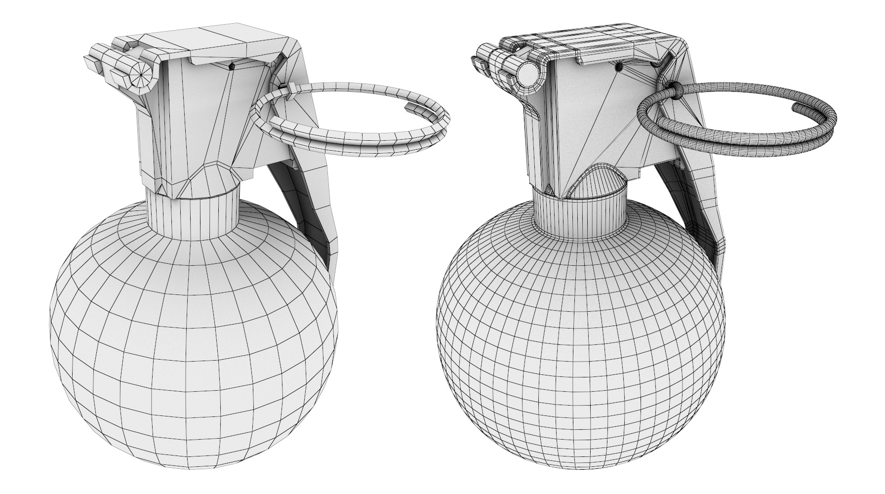 As a personal project, I made this M67 frag grenade. Not only did I do the 3D, I also programmed it to be fully functional in Unity. I also made a couple of sound effects — pulling the pin, safety handle flying off, and the explosion itself.