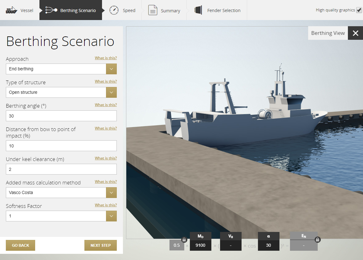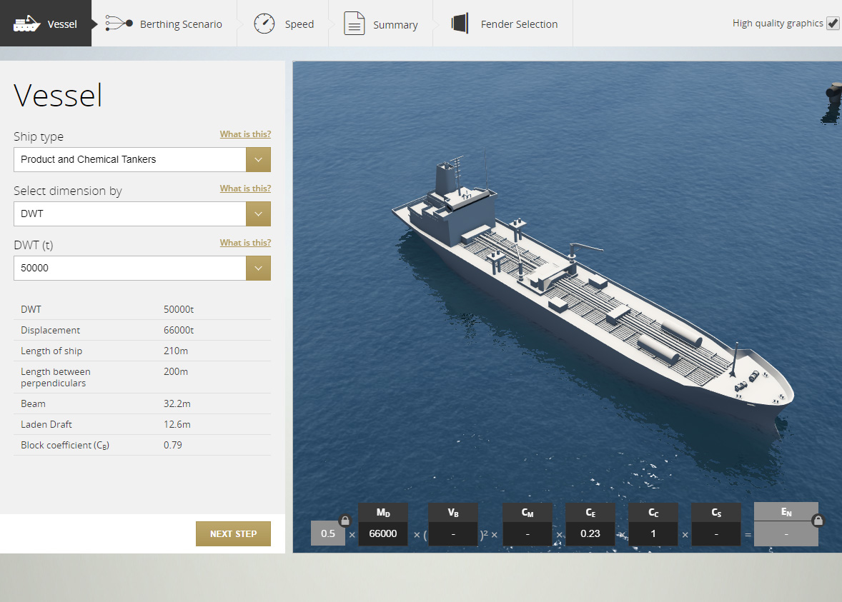 Trelleborg contracted Animech to create a visual configurator for their fender sales tool. It is aimed at owners of large scale docks who need to accommodate multiple docking scenarios. With the tool, users can select 14 different types of vessels, input their dock’s measurements and approach angles, and calculate important safety factors. Trelleborg can then help the customer choose the right type of fenders for the customer’s needs.