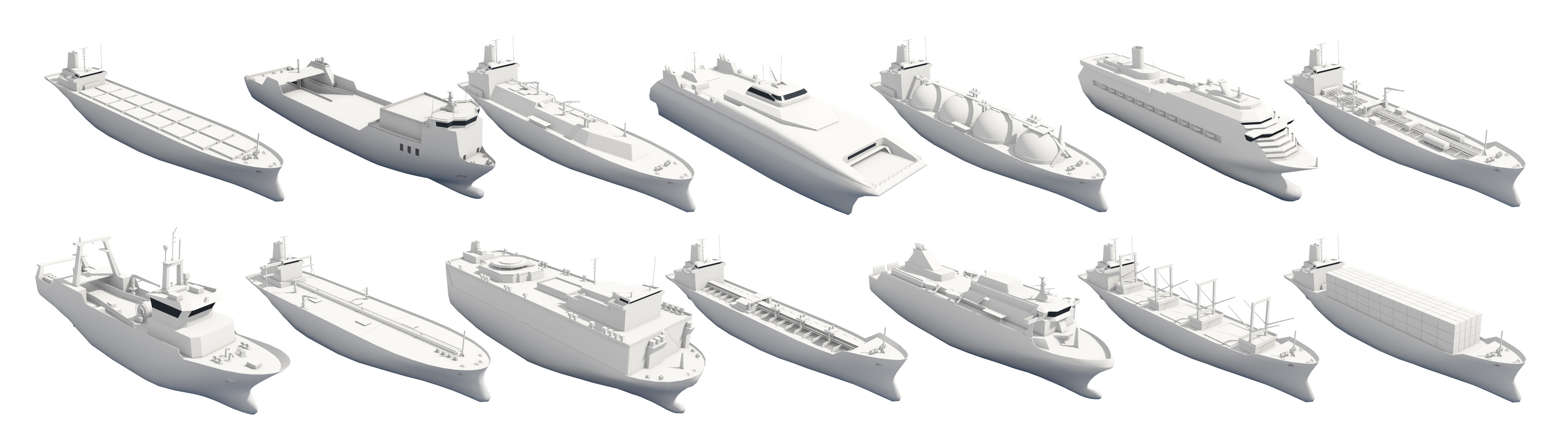I was responsible for creating the majority of the vessels. I also created the different docks and fenders. Below you can see the different vessels, as well as more screenshots from the application.